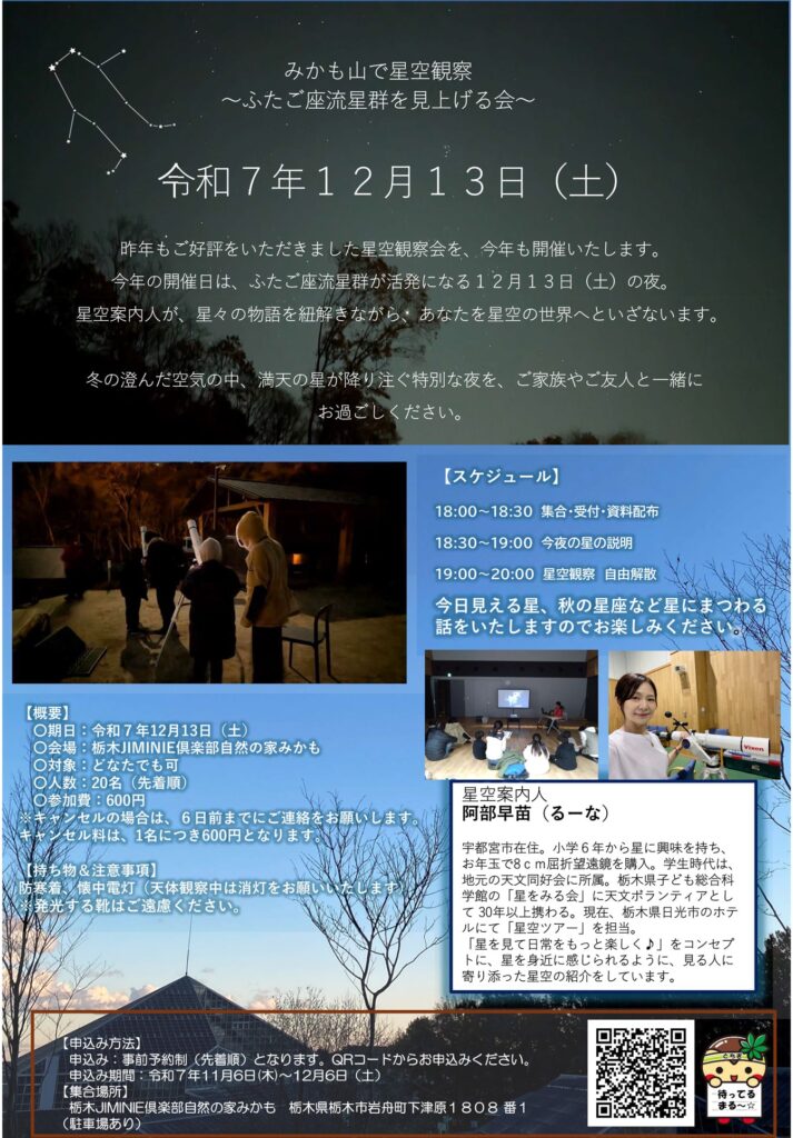 みかも山で星空観察 〜ふたご座流星群を見上げる会〜